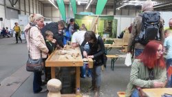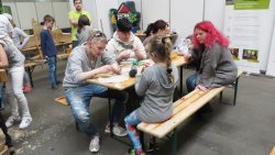 Am ersten Familientag besuchten uns viele Kinder mit ihren Eltern oder Großeltern. Es gab tolle Bastelangebote wie mittelalterliche Lederbeutelchen, Schmuck für den Osterstrauß und Dinos - und natürlich das Schnitzen. Während die Kinder am Mikroskop staunten oder sich einen Button selber machten, nutzen viele Eltern die Chance, sich zum Thema Klassenfahrt in ein Thüringer Schullandheim beraten zu lassen.