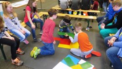 Die ersten Tage der Kinderkult sind vorüber. An unserem Stand war richtig was los. Schüler von Klasse 3 bis Klasse 7 erprobten unsere Teamspiele. Anfangs noch etwas zögerlich - aber bald waren alle voll dabei. Hatte eine Klasse ein Ziel gemeinsam erreicht, z.B. den Turm aufgebaut, gab es Jubel und Applaus.